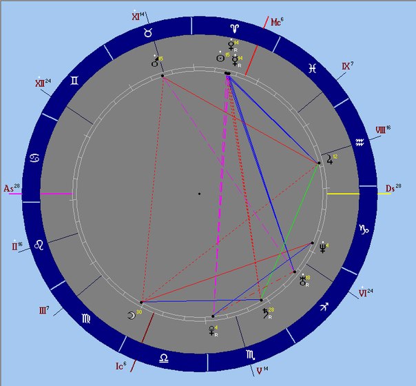 Я пока самостоятельно пытаюсь учить, мне кажется (субъективно), что Дараган хорошо пишет, по крайней мере мне понятно. Vega, помните Вы тогда в затмение в марте мне написали, что меня затронет точно оно вот я как раз тогда и начала интересоваться астрологией, и оторваться не могу По Вашим признакам астрологов у меня думаю может получиться. У меня стеллиум в 11 _соединение Венера(у1,у8,у12)-Солнце(у10)-Марс(у7,у2) квадрат от Урана(у4) к Солнцу (у10), квадрат от Солнца(у10) к Луне в 8 дом, трин от Урана на Юпитер(у3,у5) в 7 доме. Диспозитор стеллиума - Меркурий в 12 доме. Может это как раз один из способов релизовать мой тау со стеллиумом на вершине? По крайней мере астрология помогла очень разобраться в себе и победить свой весенний дипресняк. Но самое смешное, что я всегда себя считала аналитиком, по крайней мере моя работа технарем в первую очередь связана с анализом, а вот синтезировать все что вижу в прогрессиях, дирекциях и транзитах не могу((((у меня почему то начинает буянить фантазия и вижу то, что хочу увидеть(((